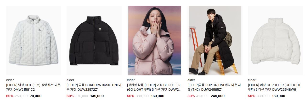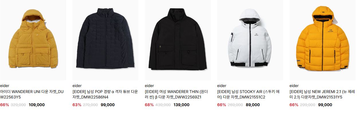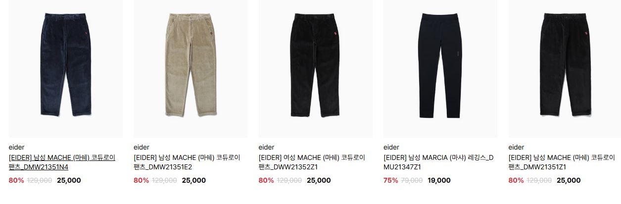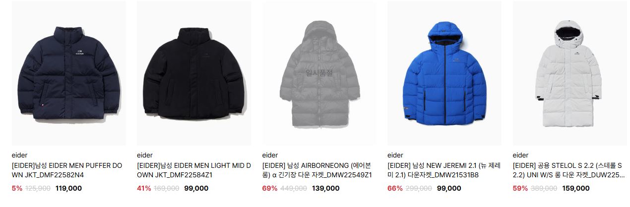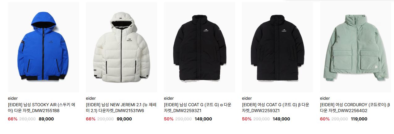 할인 품목 : 점퍼, 팬츠, 티셔츠 등