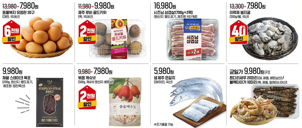할인 품목 : 과일, 축산물, 가공식품 등