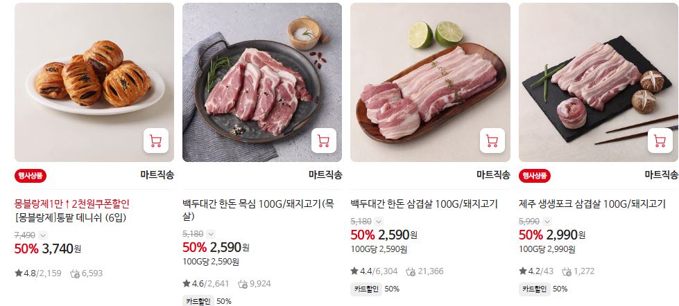 할인 품목 : 음료, 가공식품, 축산물 등