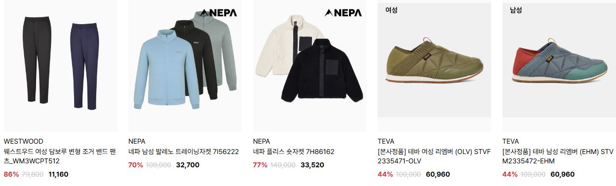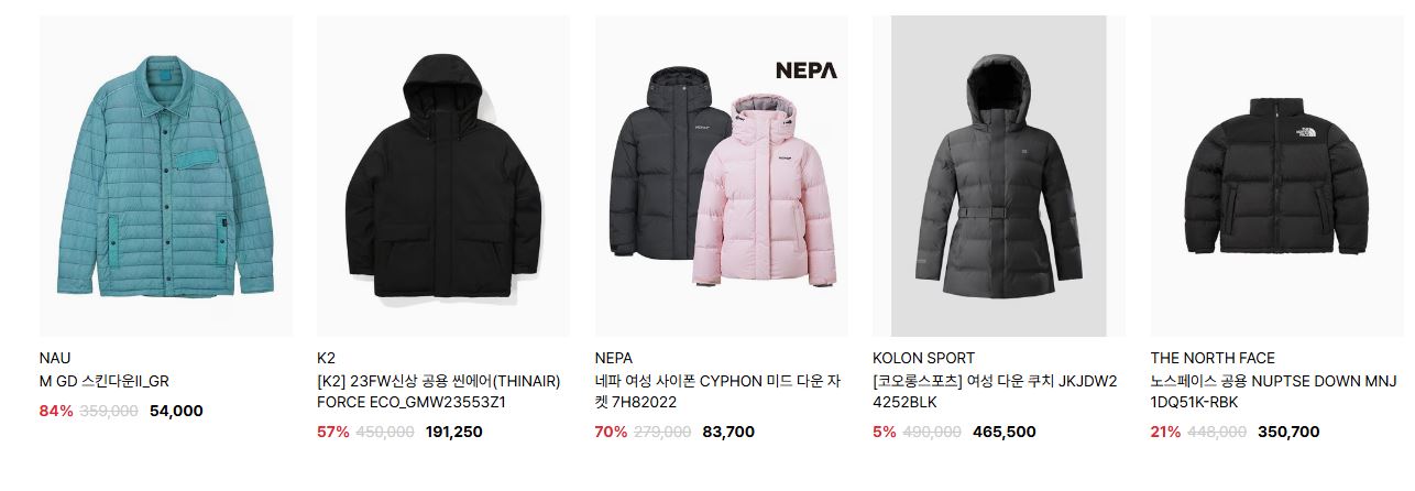 할인 품목 : 점퍼, 장갑, 모자, 텐트 등