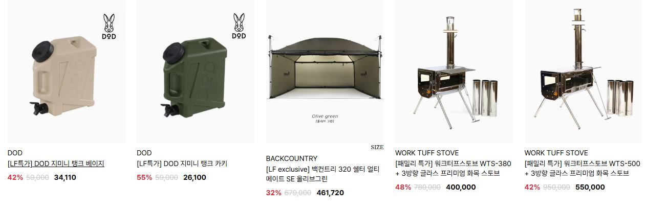 LF 겨울 아웃도어/캠핑 세일 정보 포스팅입니다.