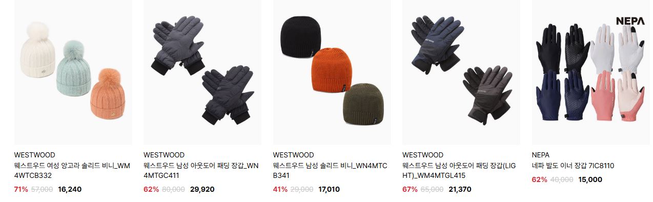 할인 품목 : 점퍼, 장갑, 모자, 텐트 등