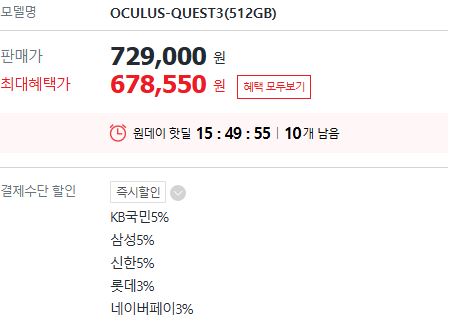 메타퀘스트3 512GB VR 헤드셋 할인 정보 [링크]