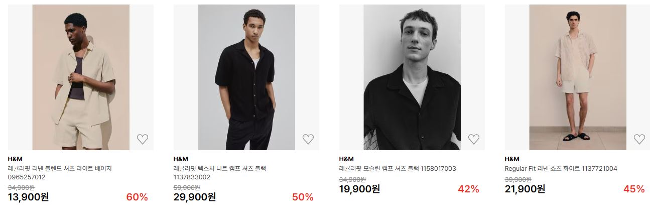 H&M 다양한 제품을 할인 판매하네요.