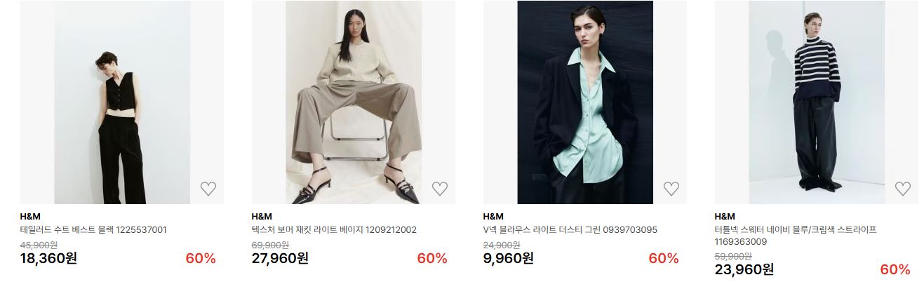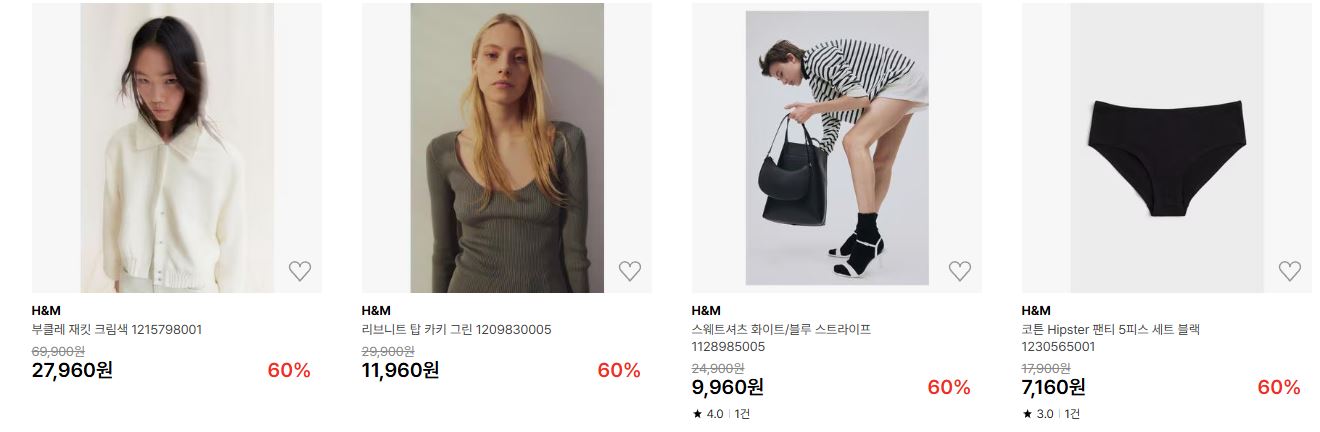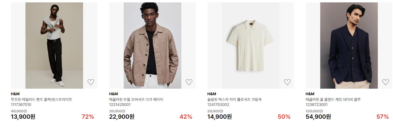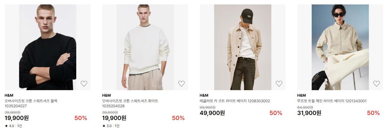 H&M 다양한 제품을 할인 판매하네요.