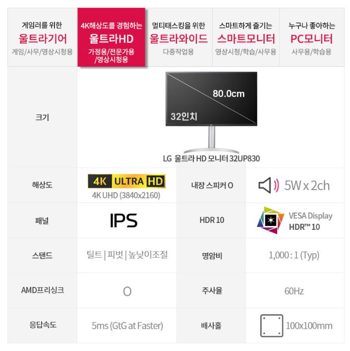 LG 32UP830 32인치 4K모니터을 할인 판매하네요.