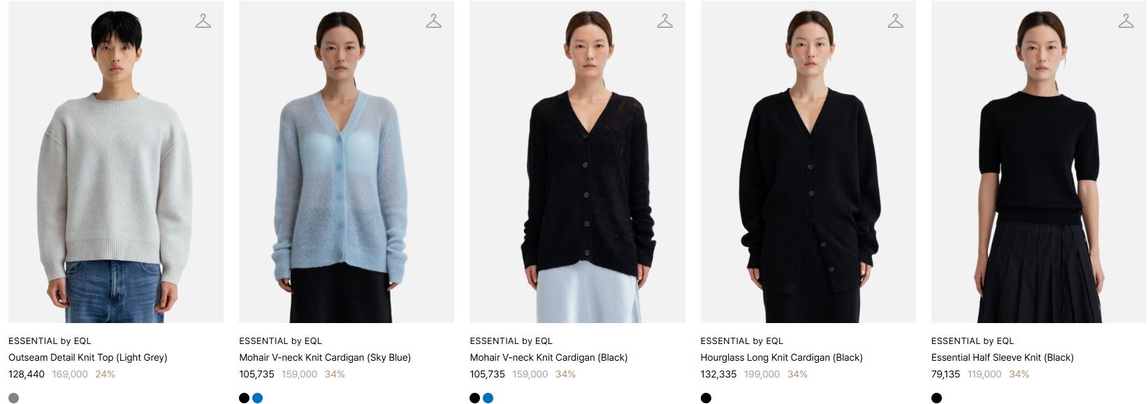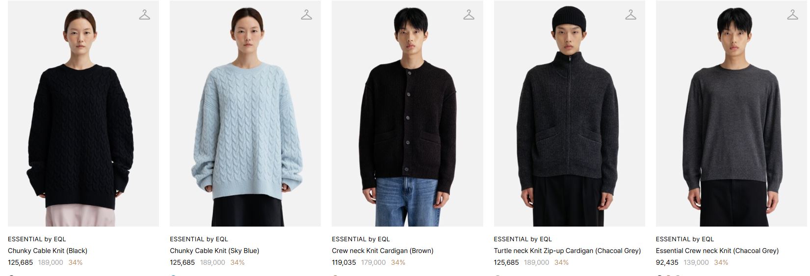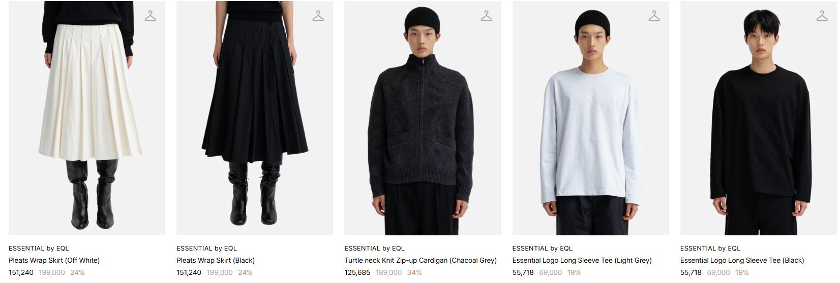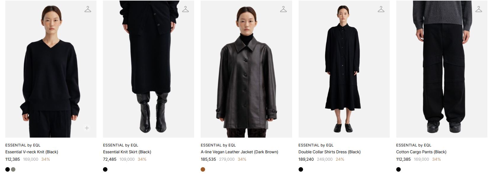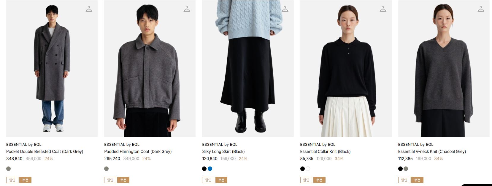 ESSENTIAL BY EQL 다양한 제품을 할인 판매하네요.