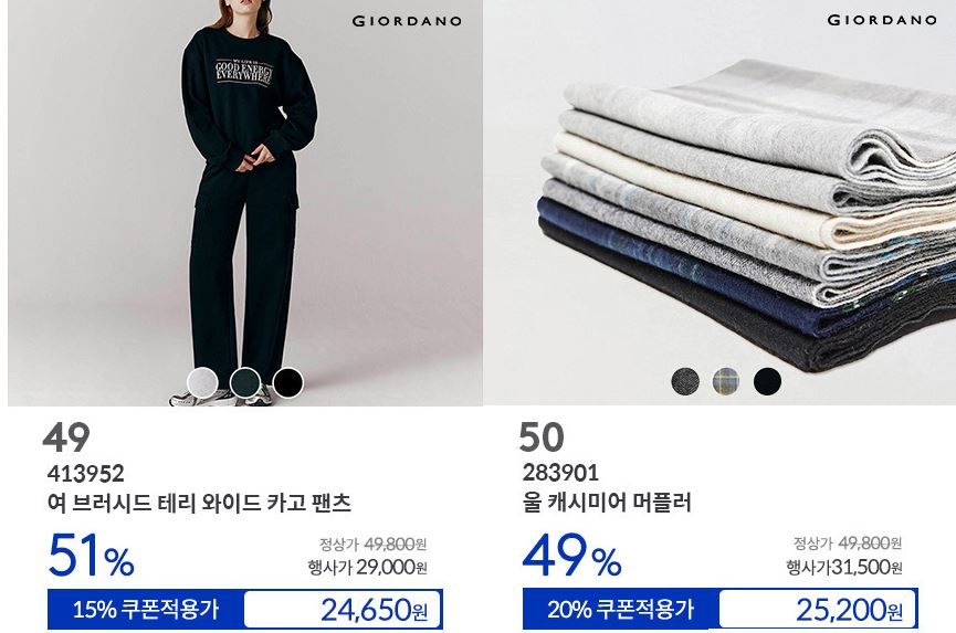 지오다노 겨울 인기 아이템 모음 할인전 정보 포스팅입니다.