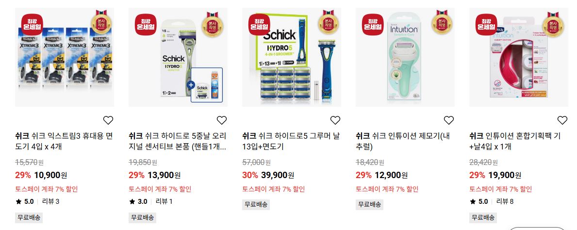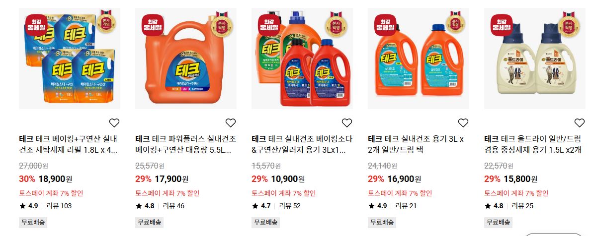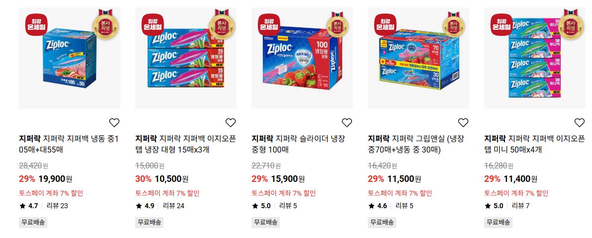할인 품목 : 세제, 면도기, 지퍼백 등