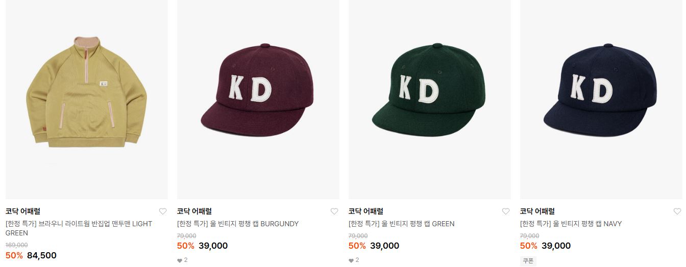 코닥 어패럴 다양한 제품을 할인 판매하네요.
