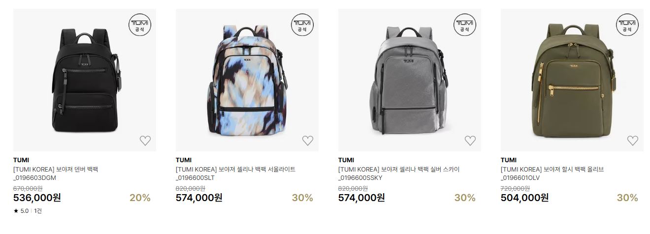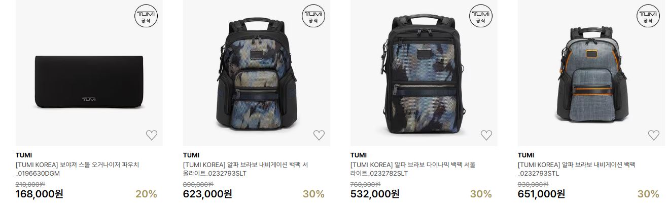 투미 다양한 제품을 할인 판매하네요.