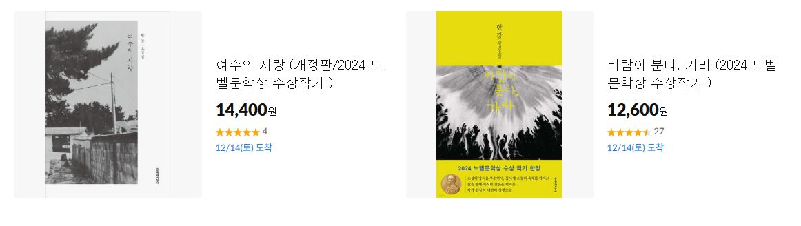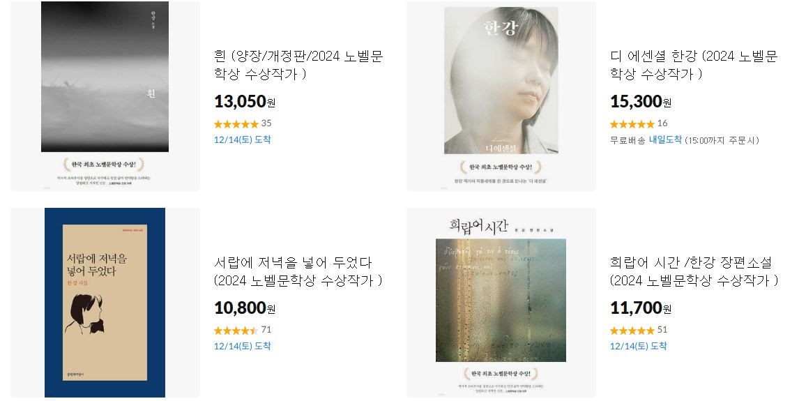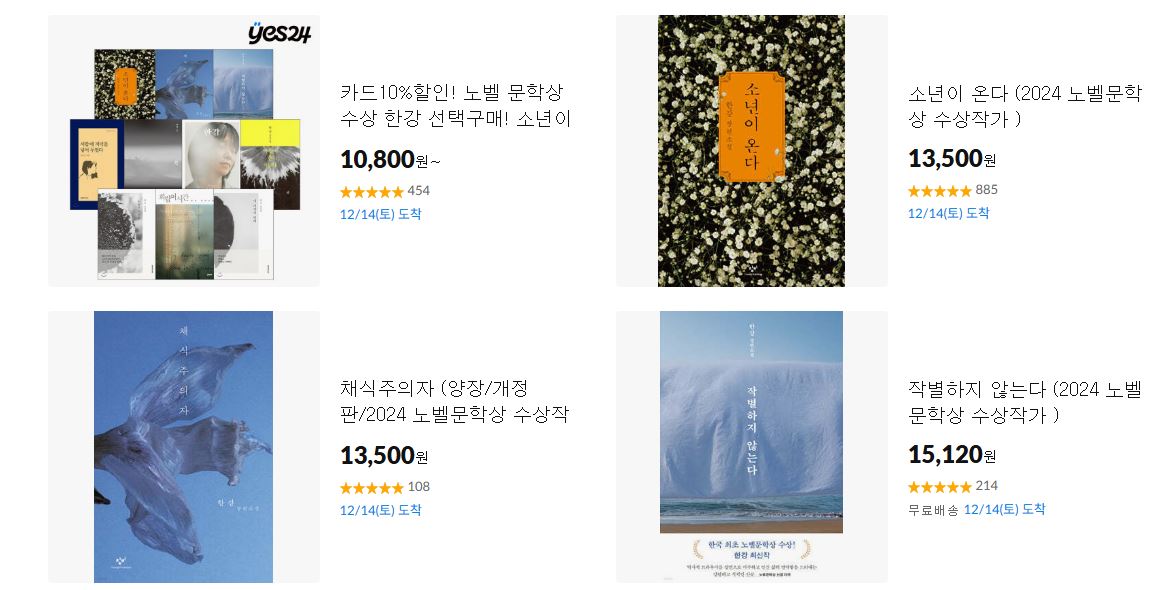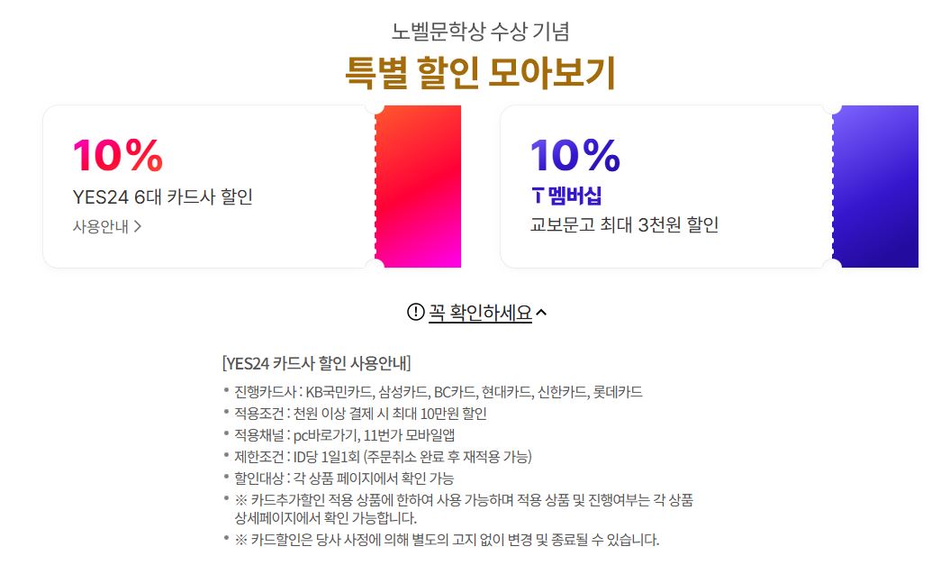11번가 2024 노벨문학상 특별전 이벤트를 진행하네요.