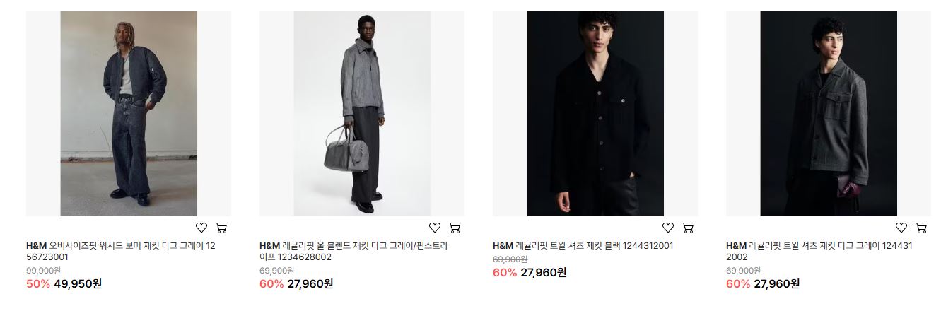 H&M 다양한 제품을 할인 판매하네요.