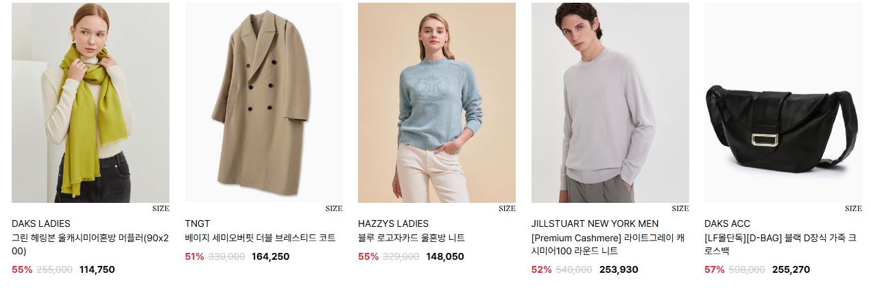 할인 품목 : 점퍼, 코트, 니트, 가방 등