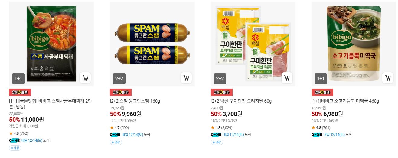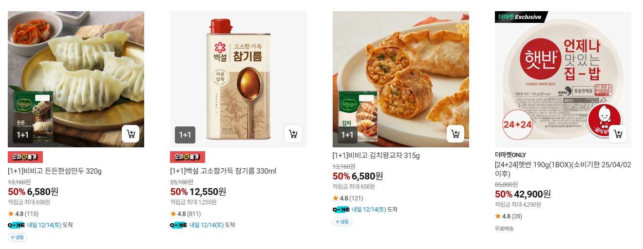 할인 품목 : 햇반, 갈바팅, 만두 등