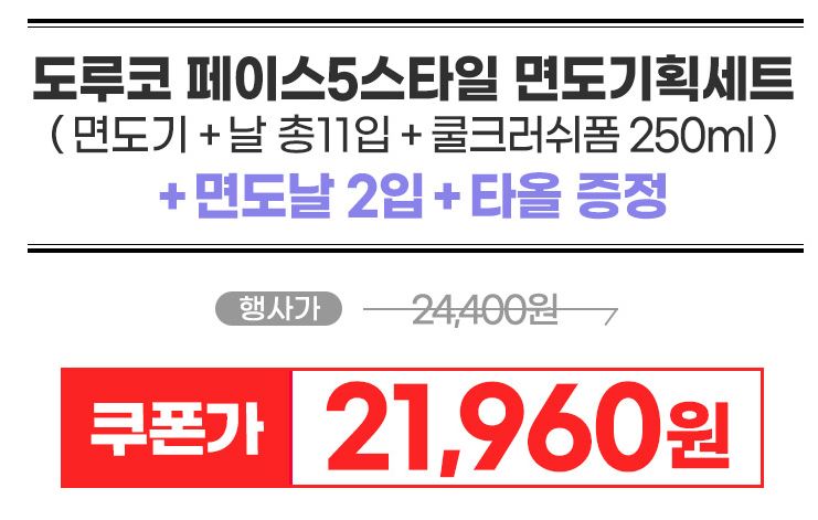 도루코 페이스5 면도기기획세트 할인 정보 포스팅입니다.