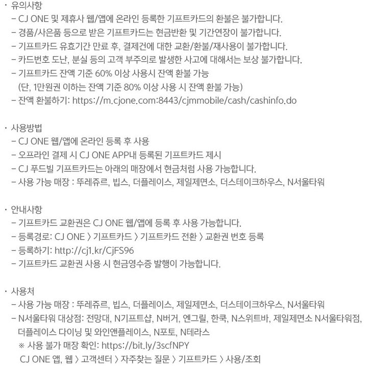 CJ푸드빌 통합 기프트카드 3만원권 15% 할인 정보 [링크]