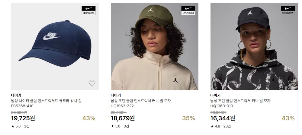 할인 품목 : 신발, 점퍼, 티셔츠, 모자 등
