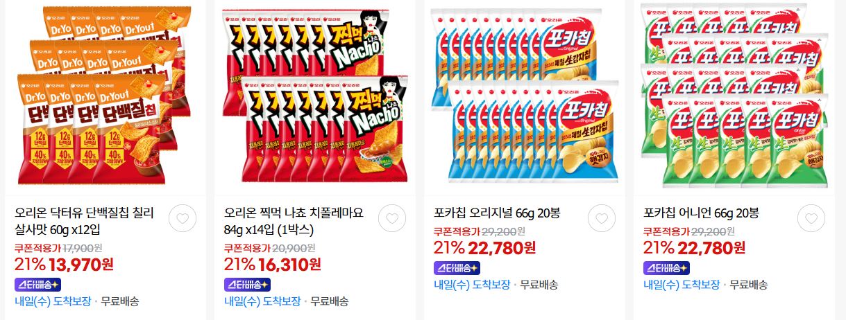 할인 품목 : 꼬북칩, 포카칩, 생수 등