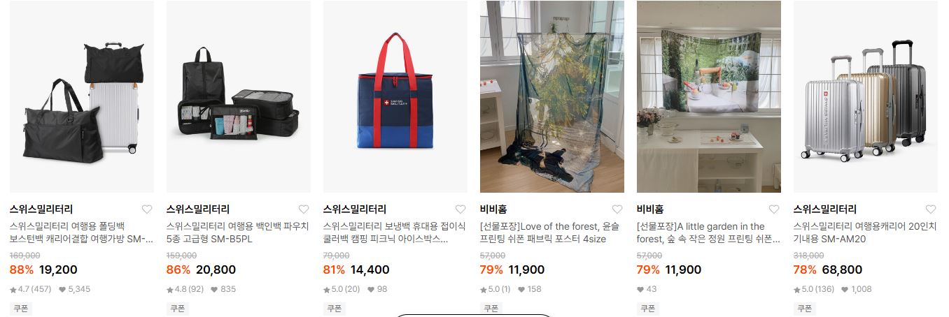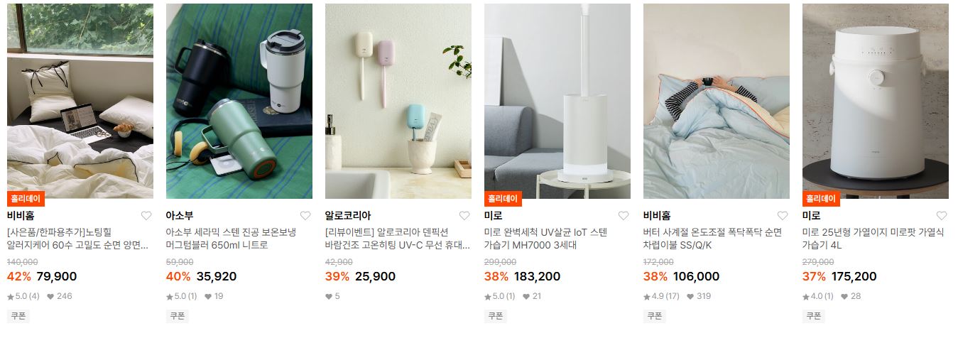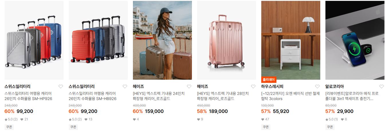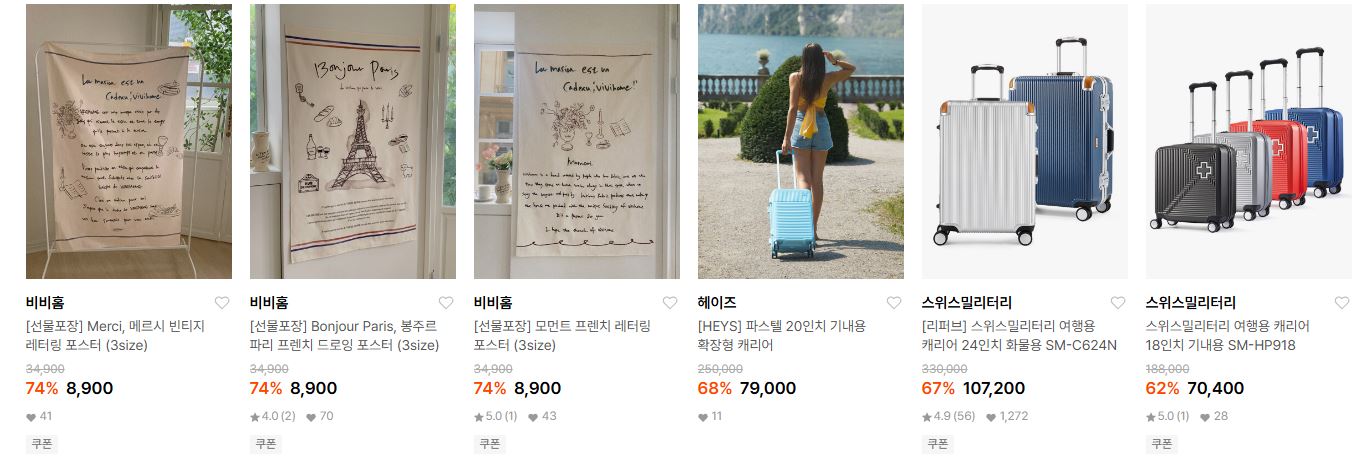 할인 품목 : 텀블러, 캐리어, 가습기 등