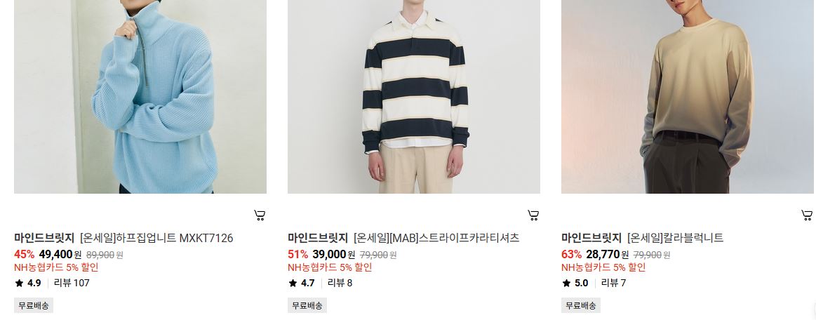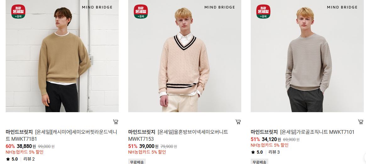 할인 품목 : 니트, 코트, 점퍼 등