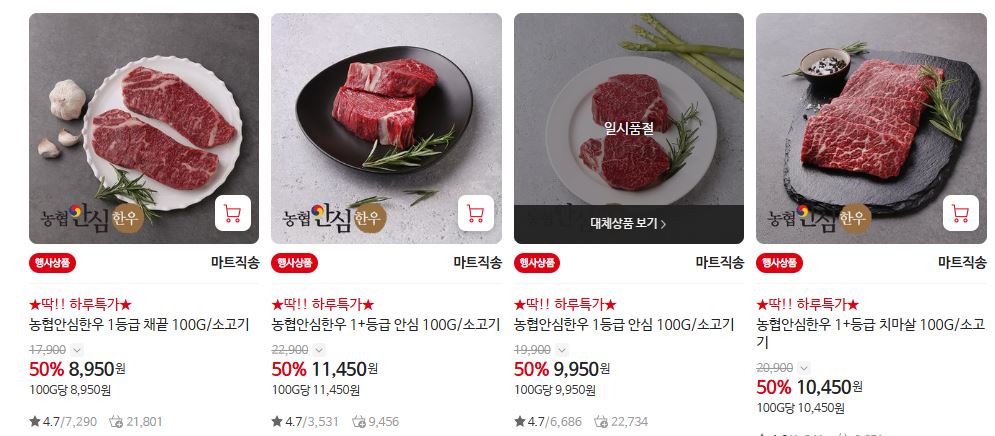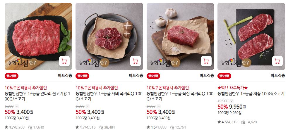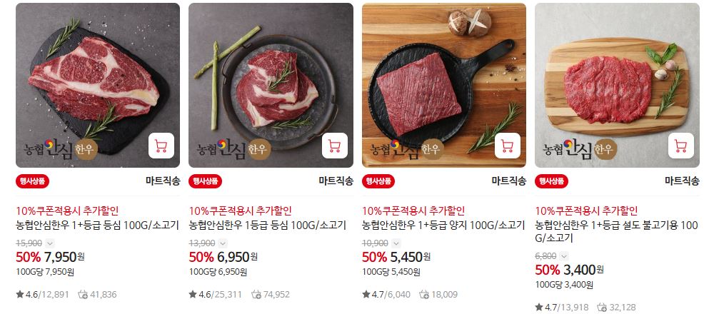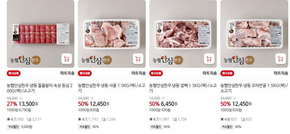 할인 품목 : 등심, 양지, 사태 등
