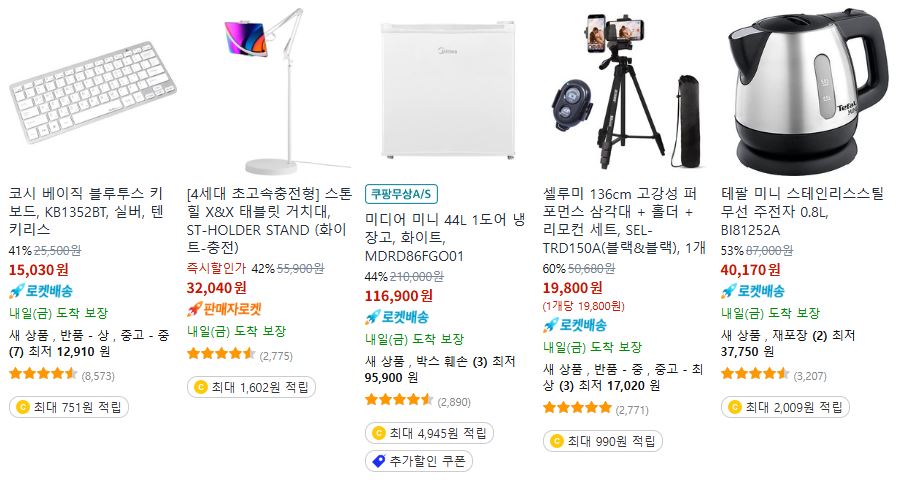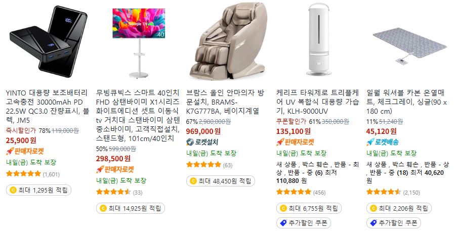 할인 품목 : 보조배터리, 키보드, 커피머신 등