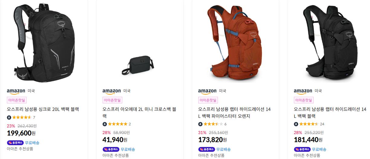 오스프리 다양한 제품을 할인 판매하네요.