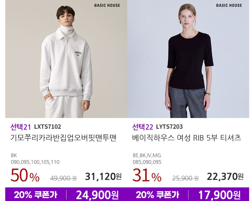 베이직하우스 다양한 제품을 할인 판매하네요.