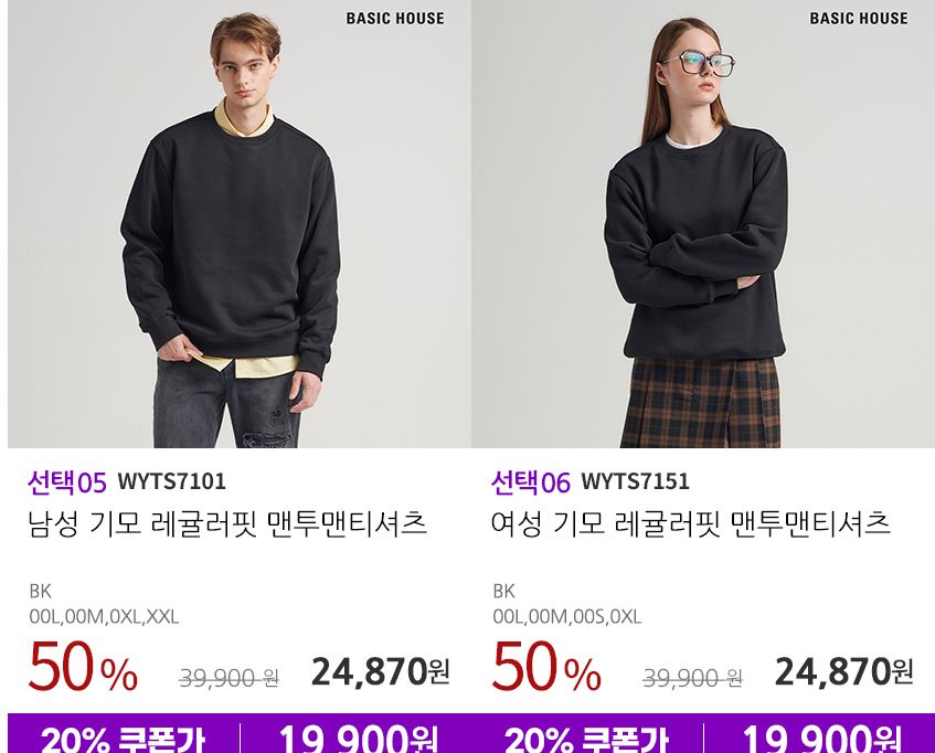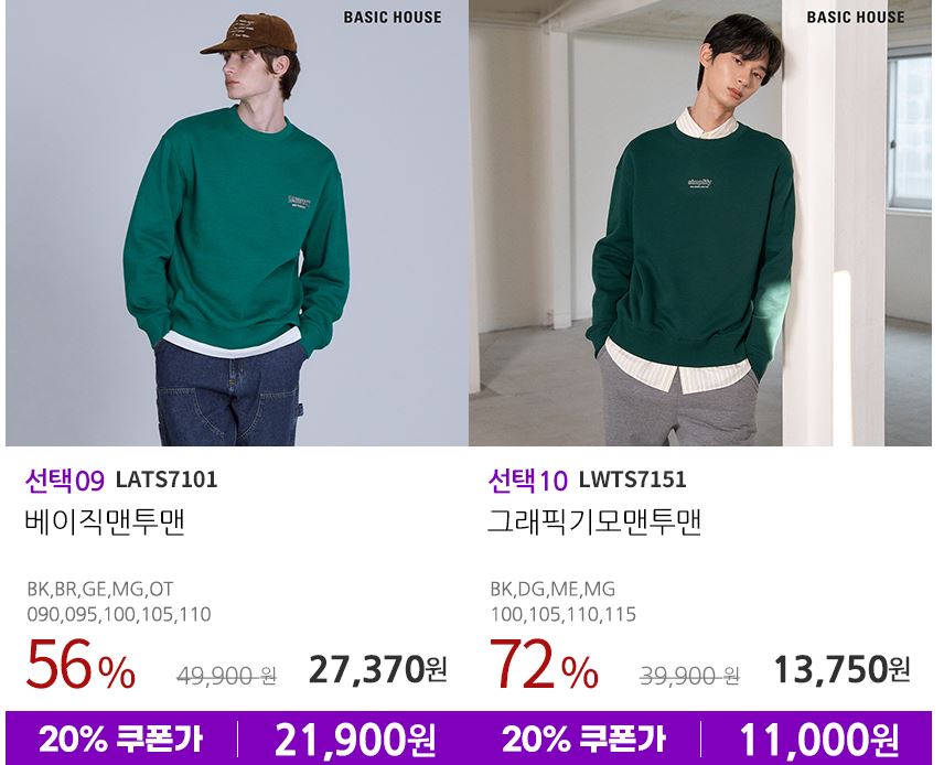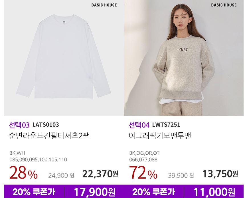 베이직하우스 다양한 제품을 할인 판매하네요.