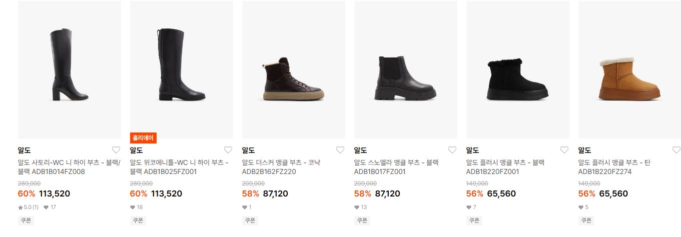 알도 최대 63% 세일 정보 [링크]