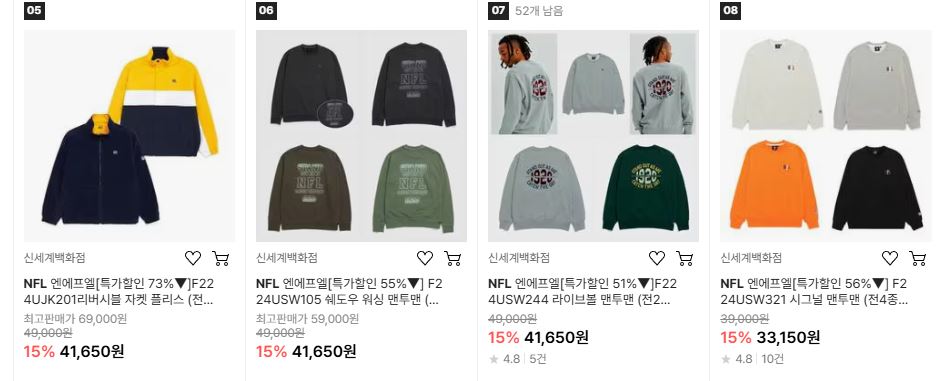 NFL 이월 의류 특가 모음전