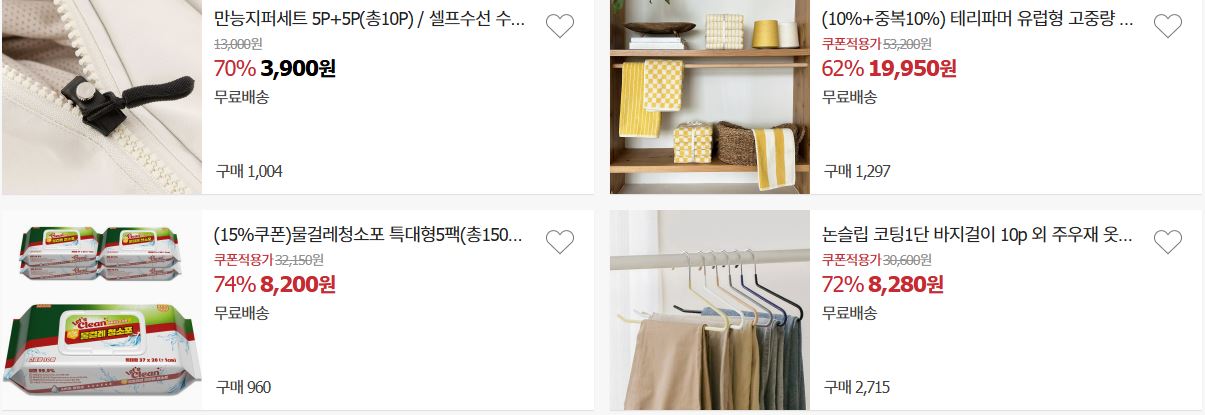 할인 품목 : 휴지, 옷걸이, 치약 등