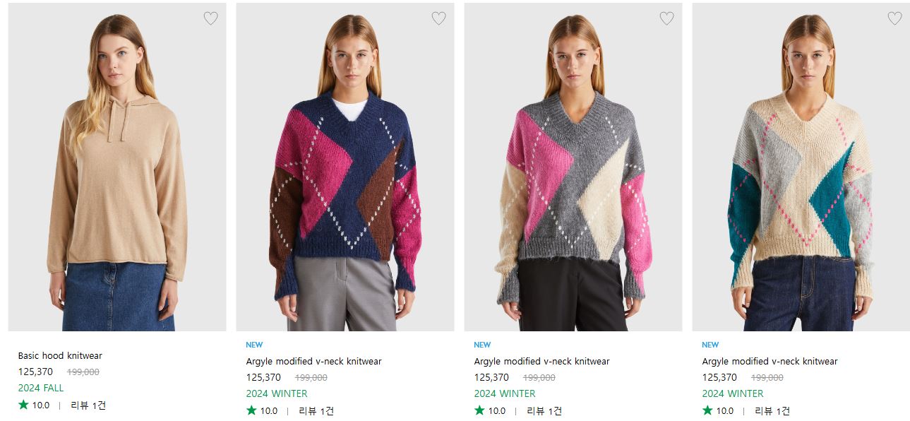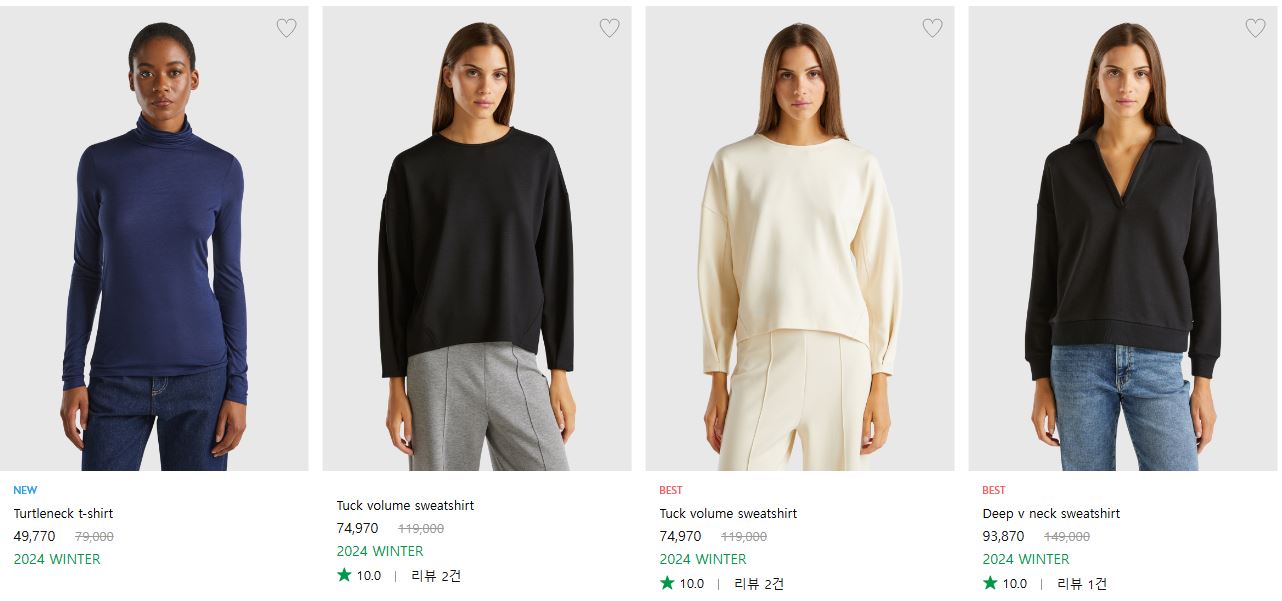 베네통 다양한 제품을 할인 판매하네요.
