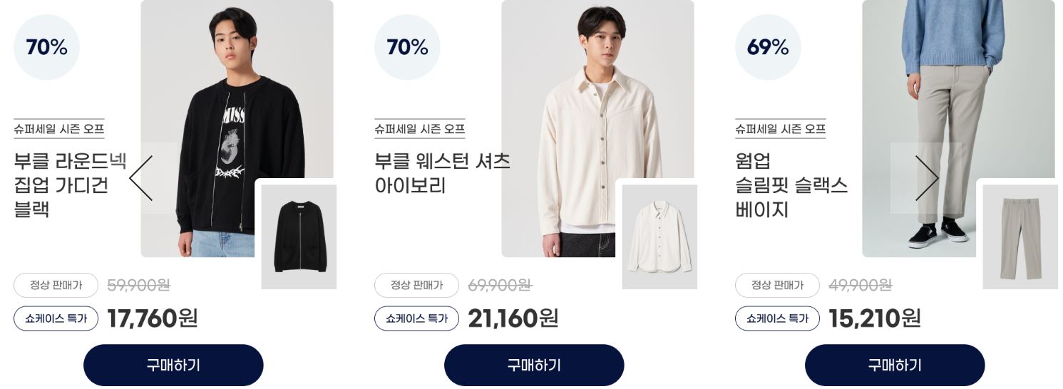 할인 품목 : 점퍼, 티셔츠, 니트, 악세사리 등