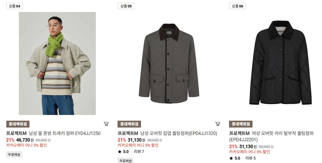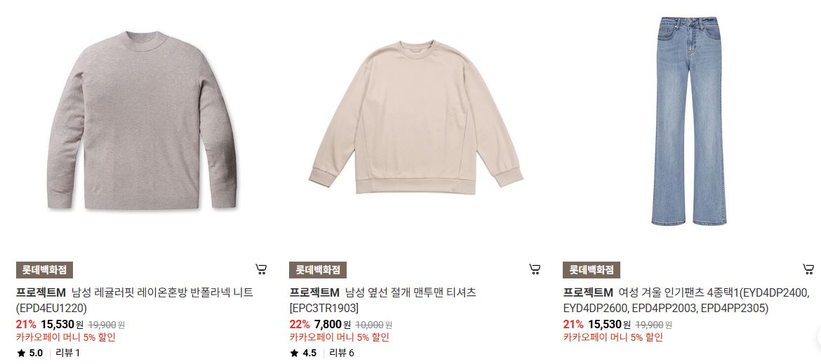 프로젝트엠 다양한 제품을 할인 판매하네요.