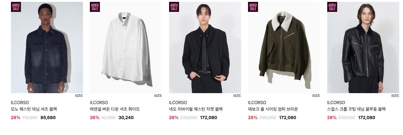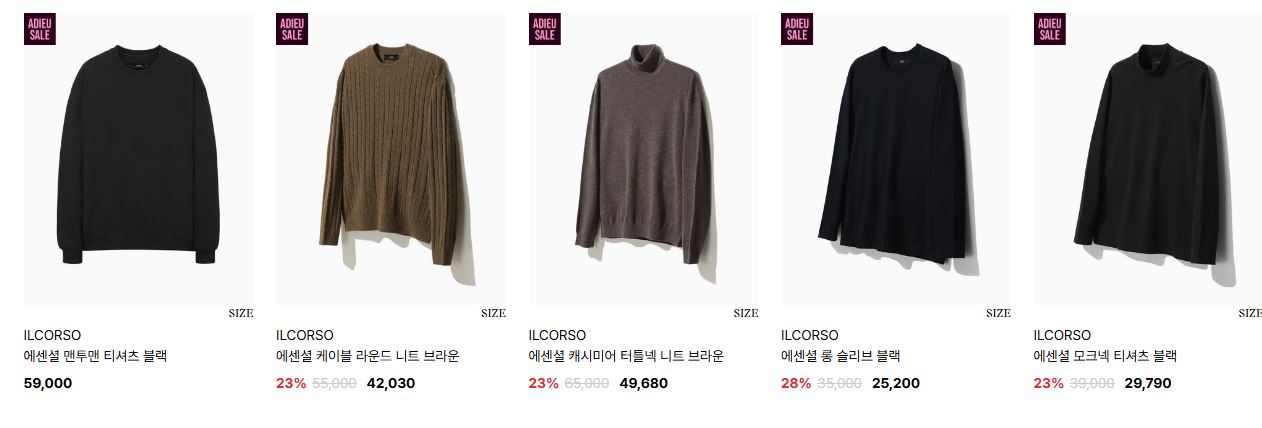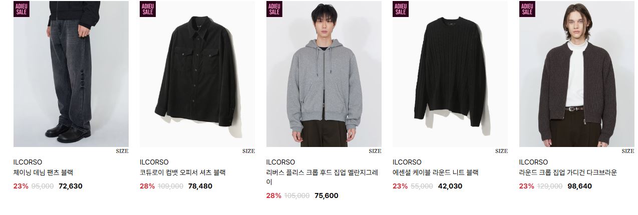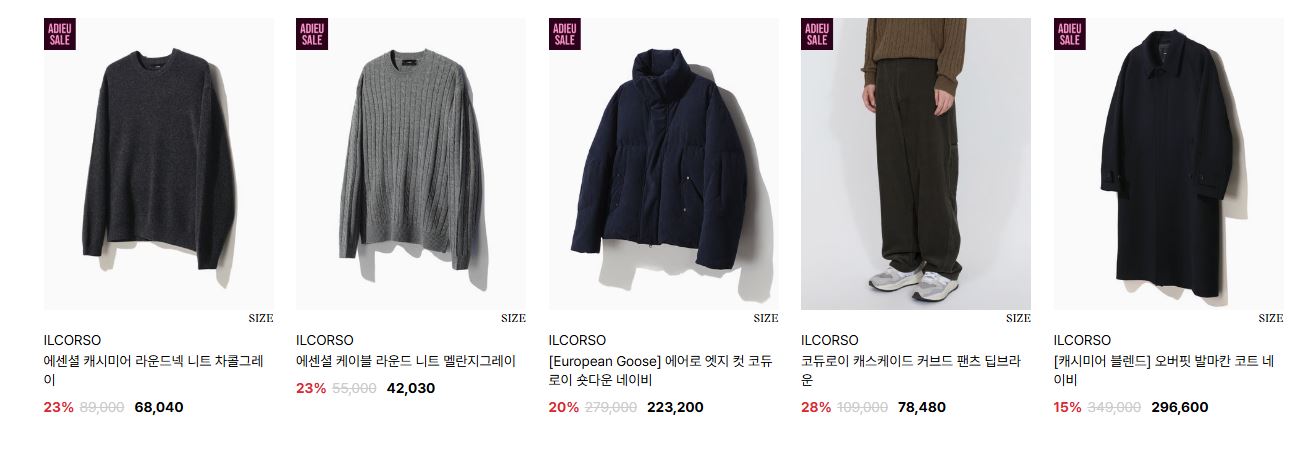 일꼬르소 다양한 제품을 할인 판매하네요.