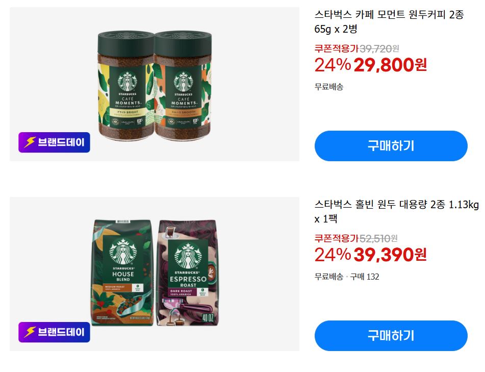 할인 품목 : 캡슐커피, 원두커피, 초콜렛 등