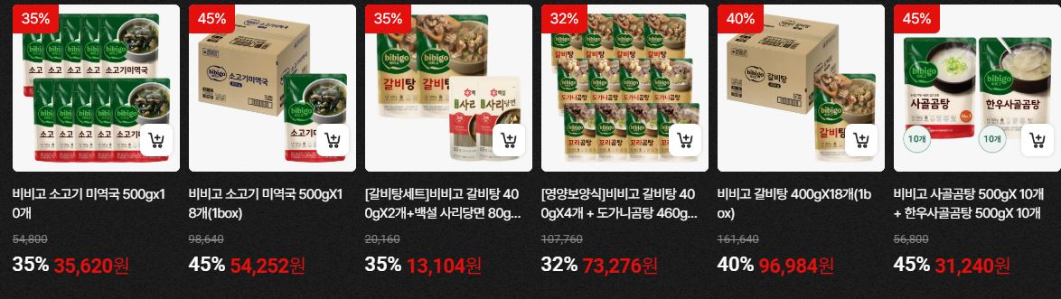 할인 품목 : 햇반, 피자, 치킨 등