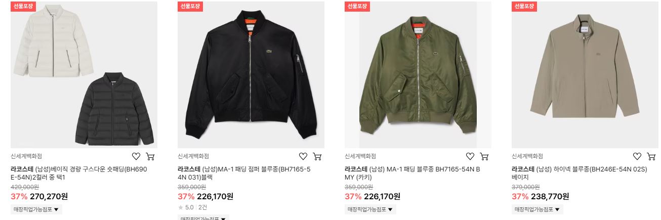 할인 품목 : 점퍼, 자켓, 니트, 티셔츠 등