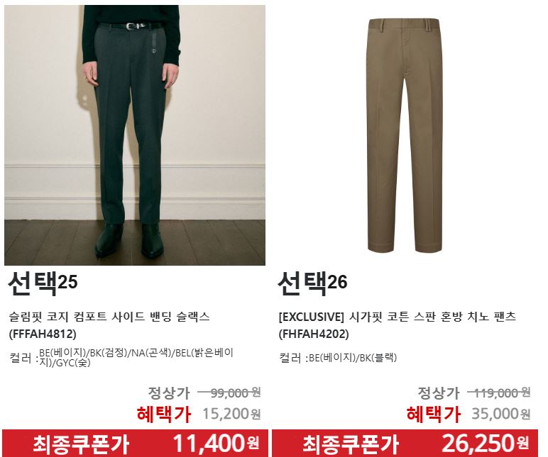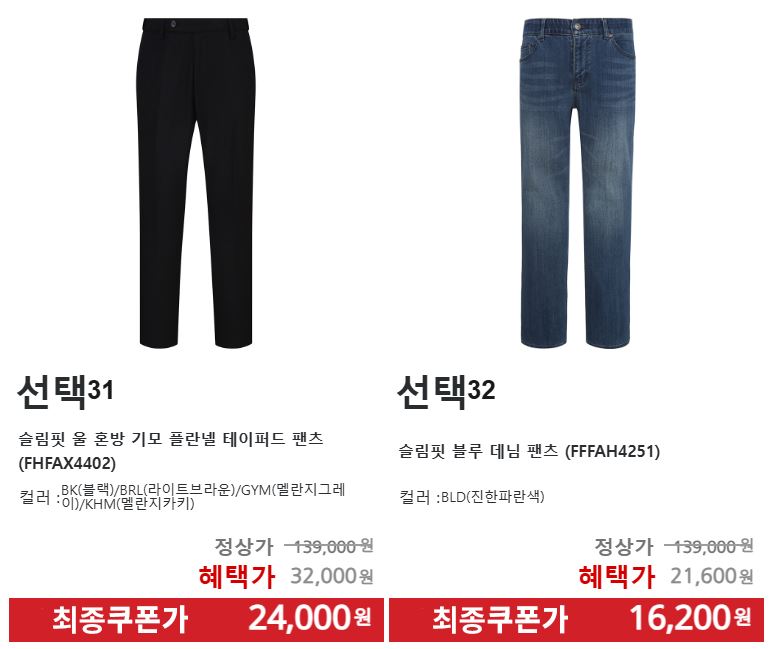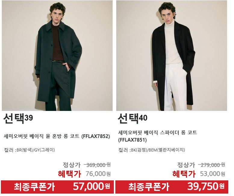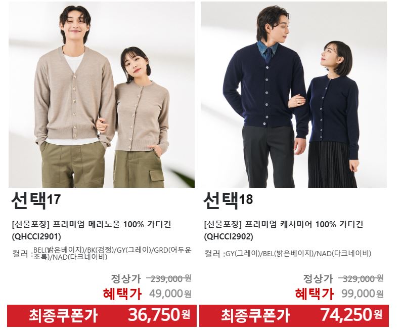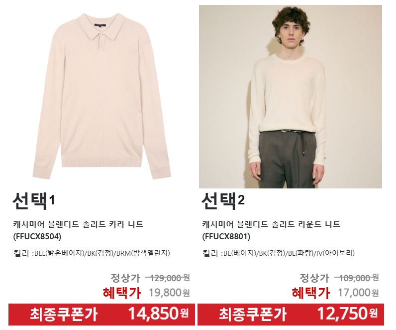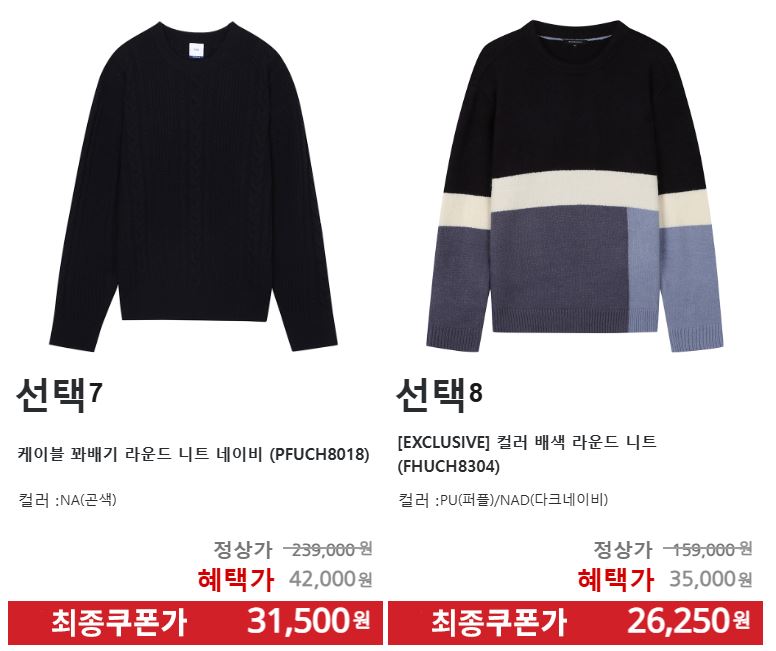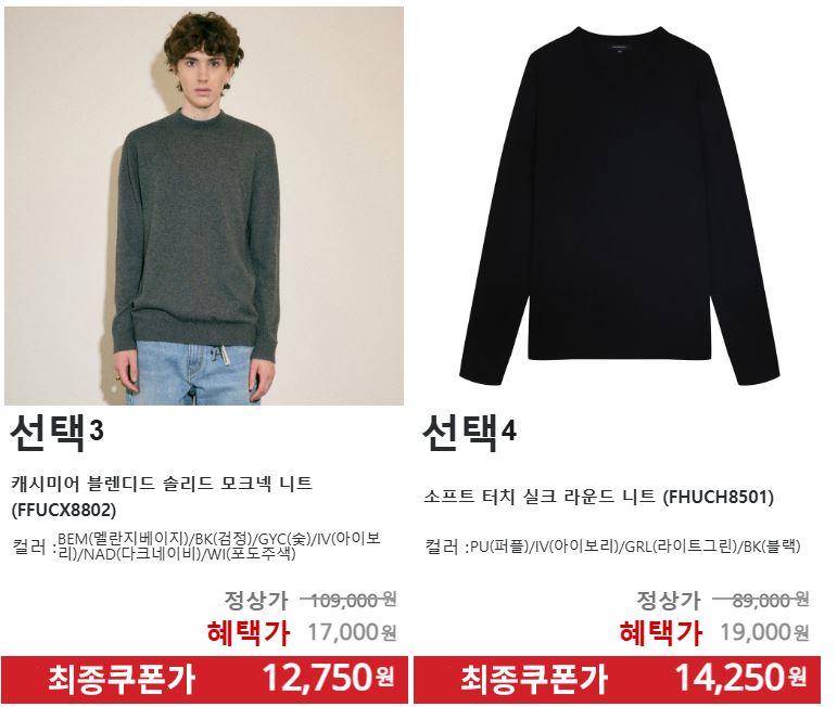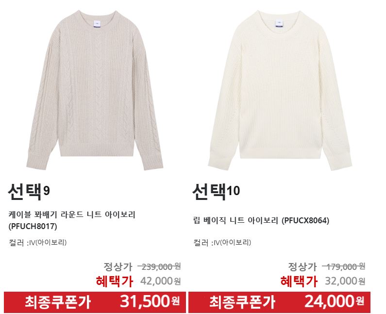 할인 품목 : 니트, 가디건, 코트, 팬츠 등