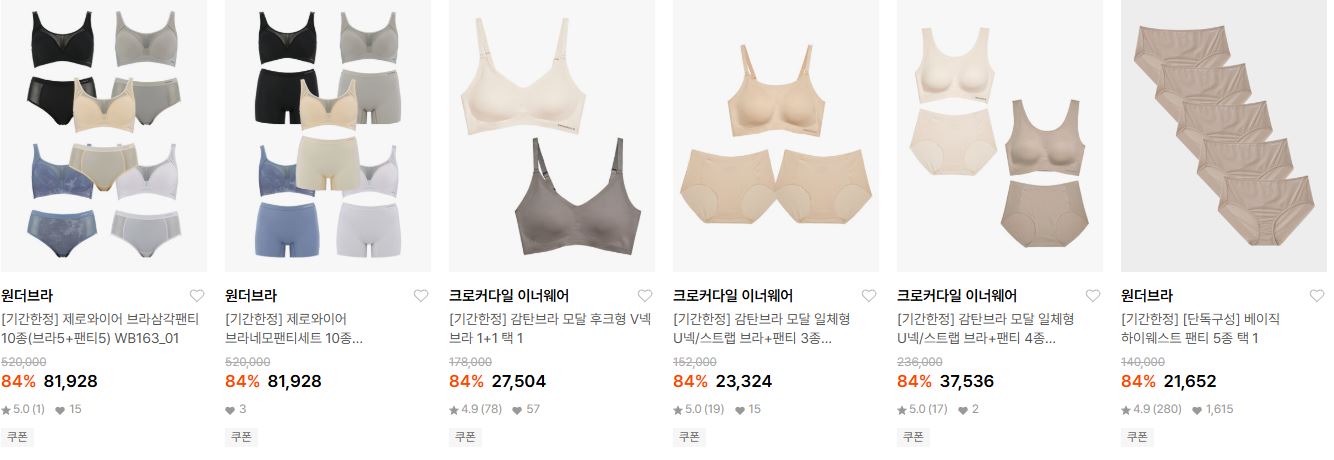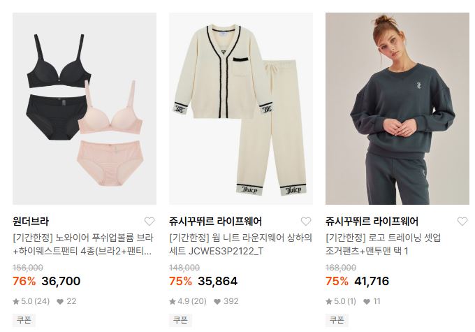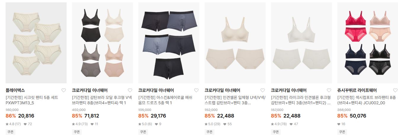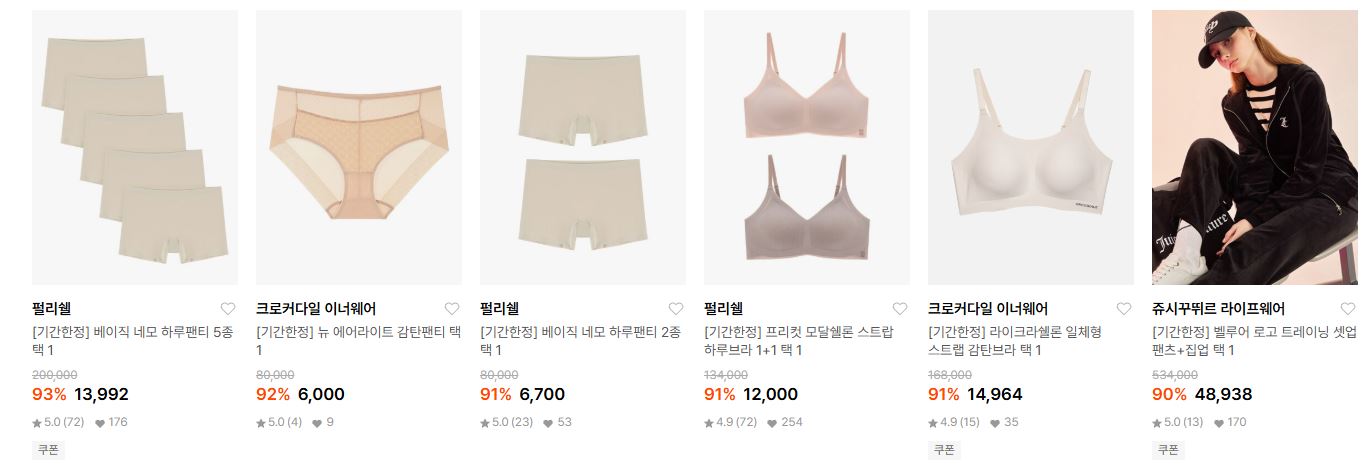 할인 품목 : 팬티, 브라, 라운지웨어 등