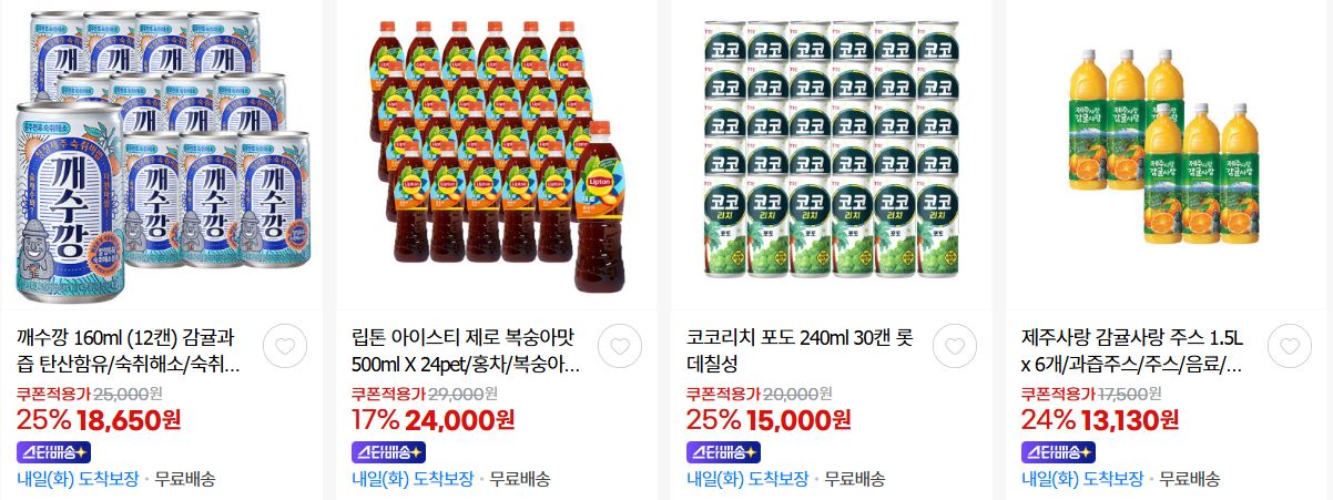 롯데칠성 다양한 제품을 할인 판매하네요.