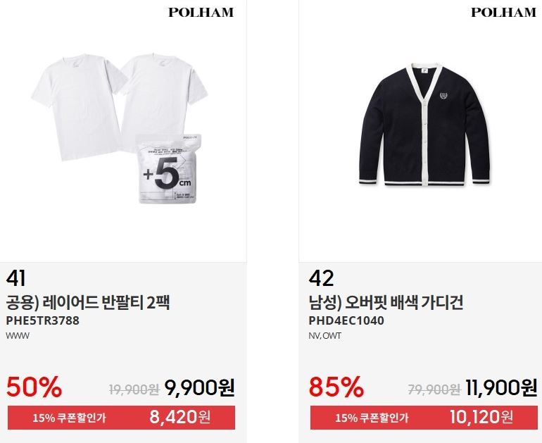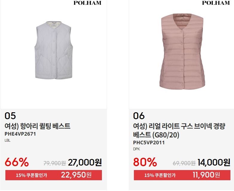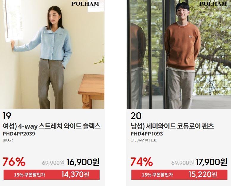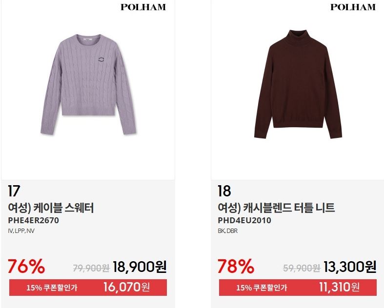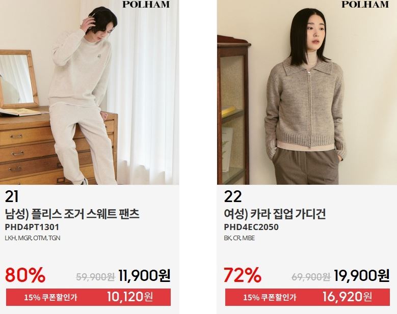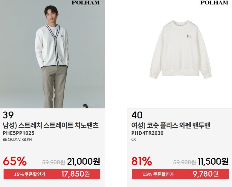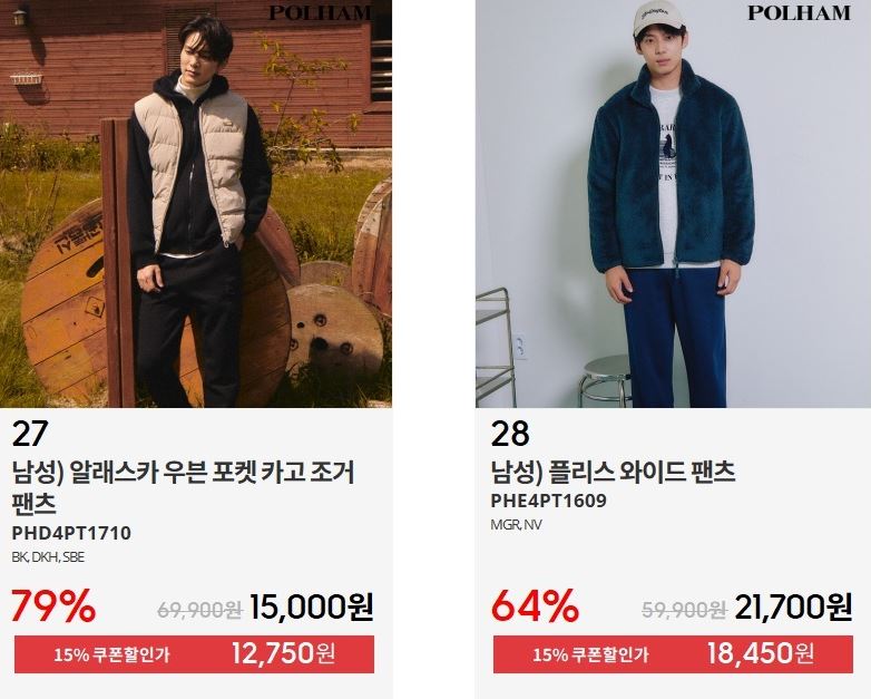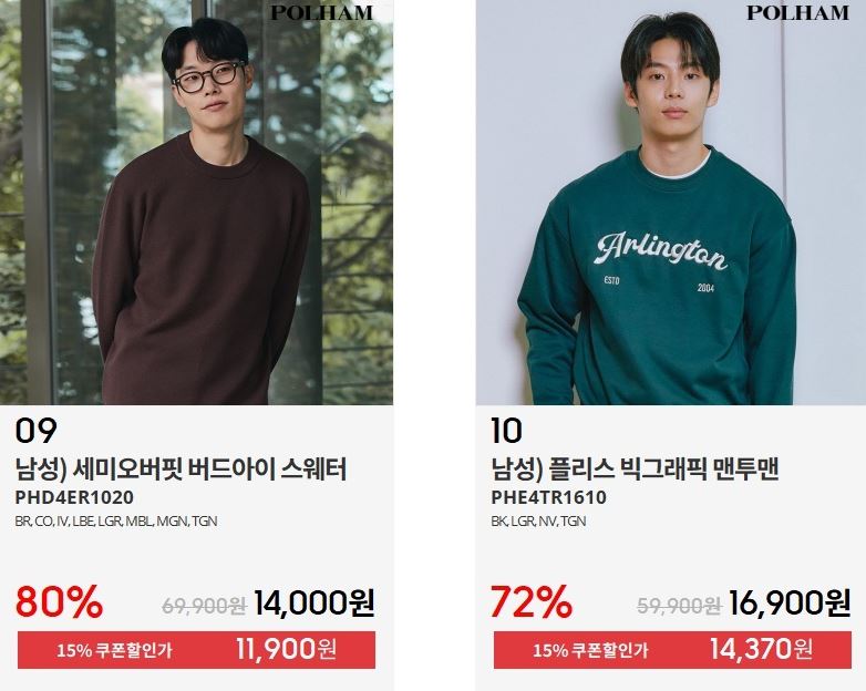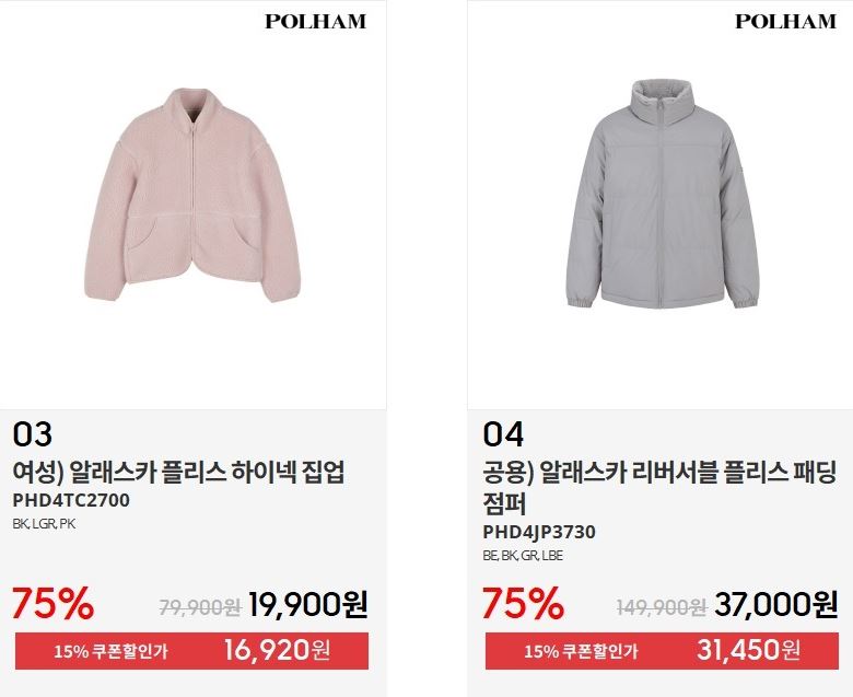 할인 품목 : 패딩, 맨투맨, 스웨터 등