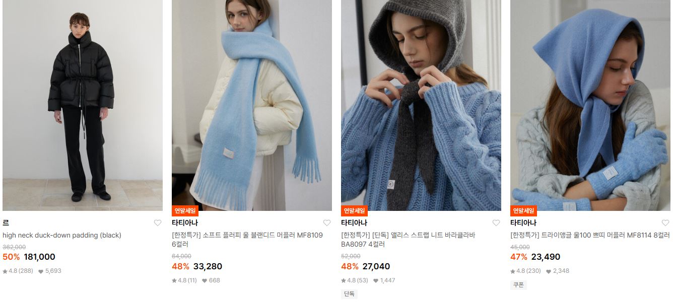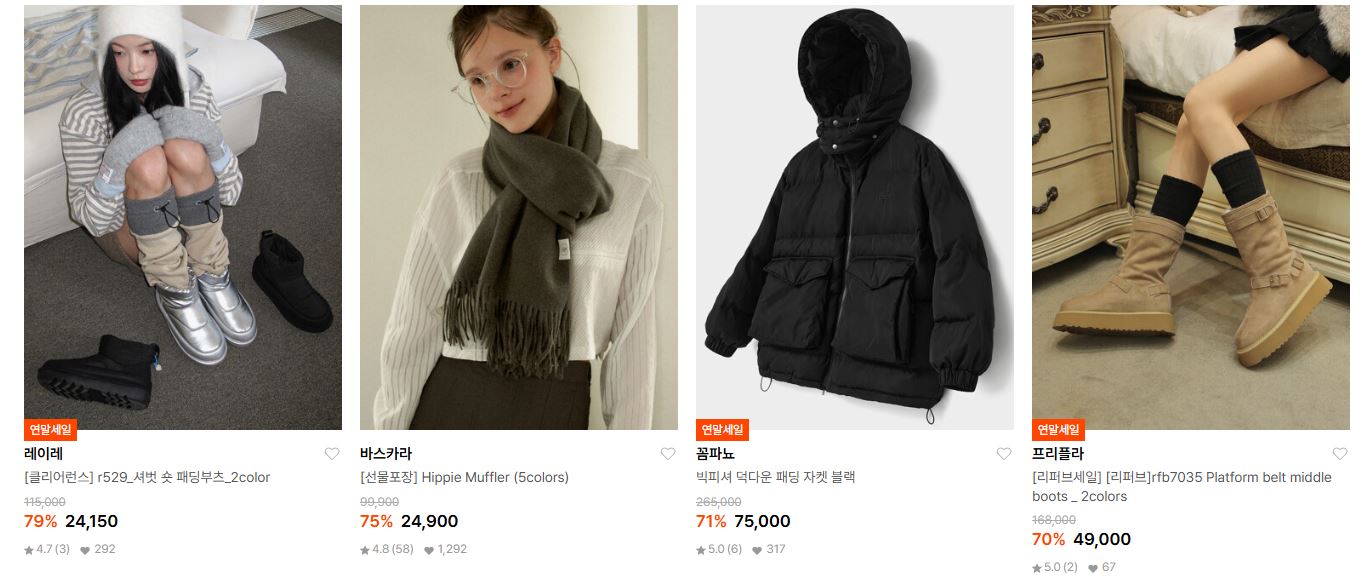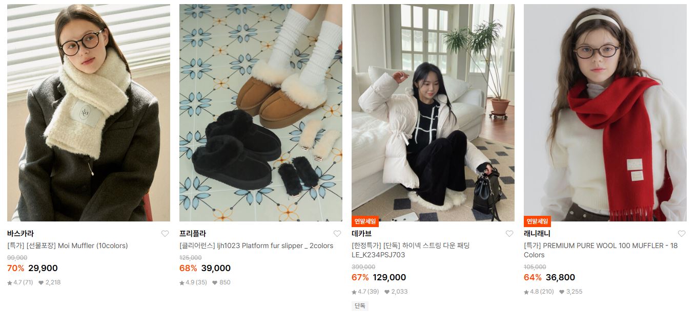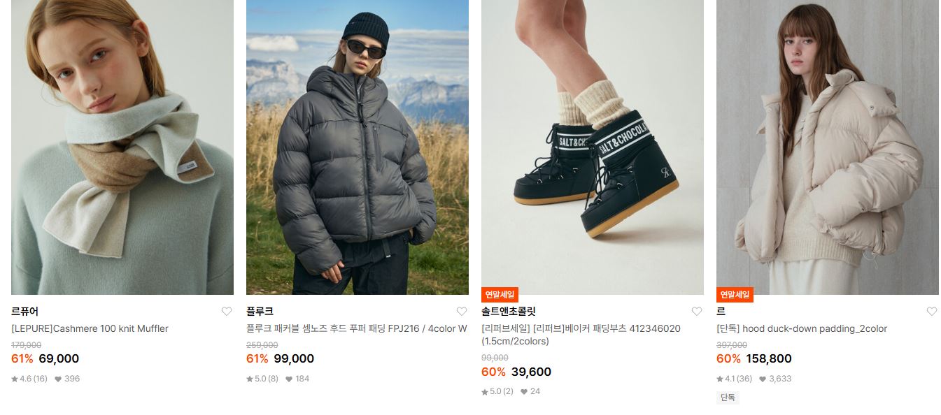 할인 품목 : 점퍼, 머플러, 모자, 부츠 등