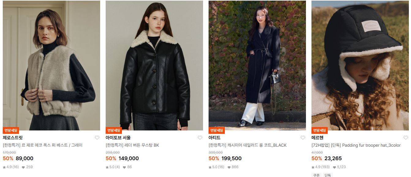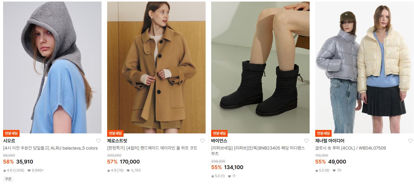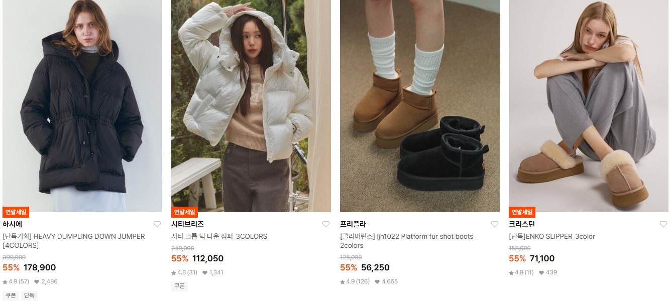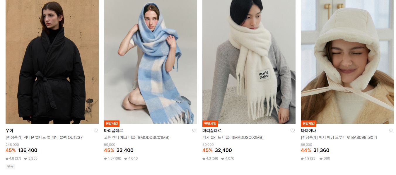 할인 품목 : 점퍼, 머플러, 모자, 부츠 등