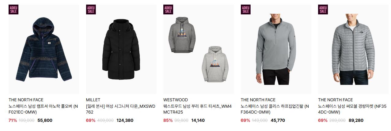 할인 품목 : 점퍼, 티셔츠, 장갑 등