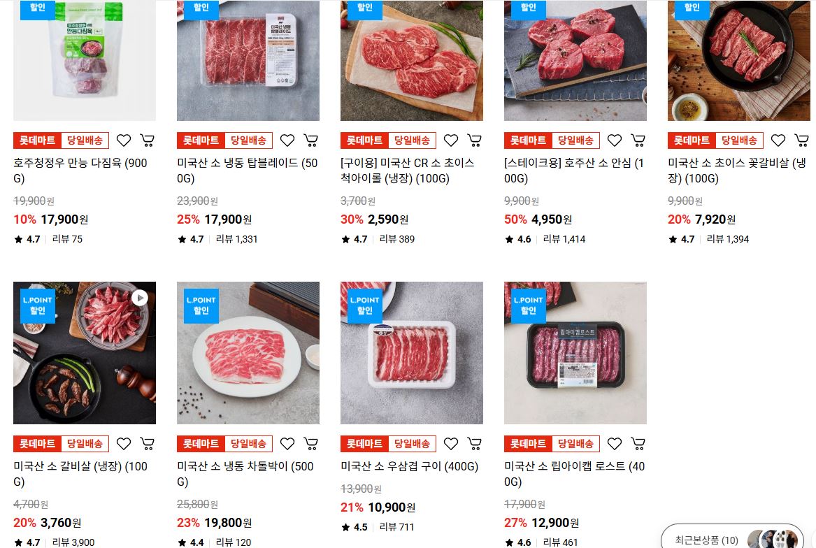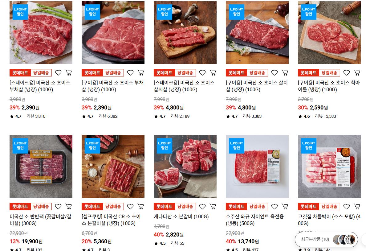 롯데마트 다양한 제품을 할인 판매하네요.