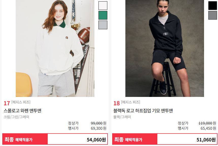 할인 품목 : 스웨터, 맨투맨 등