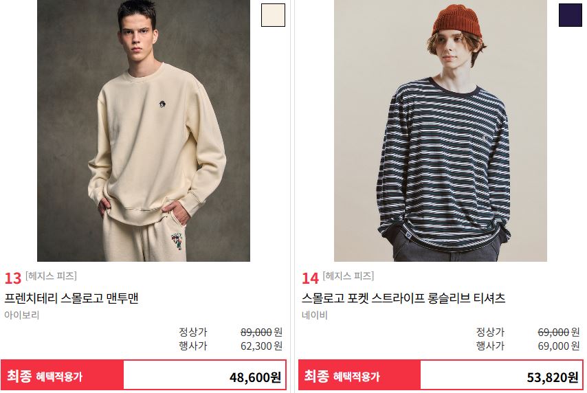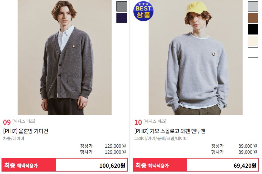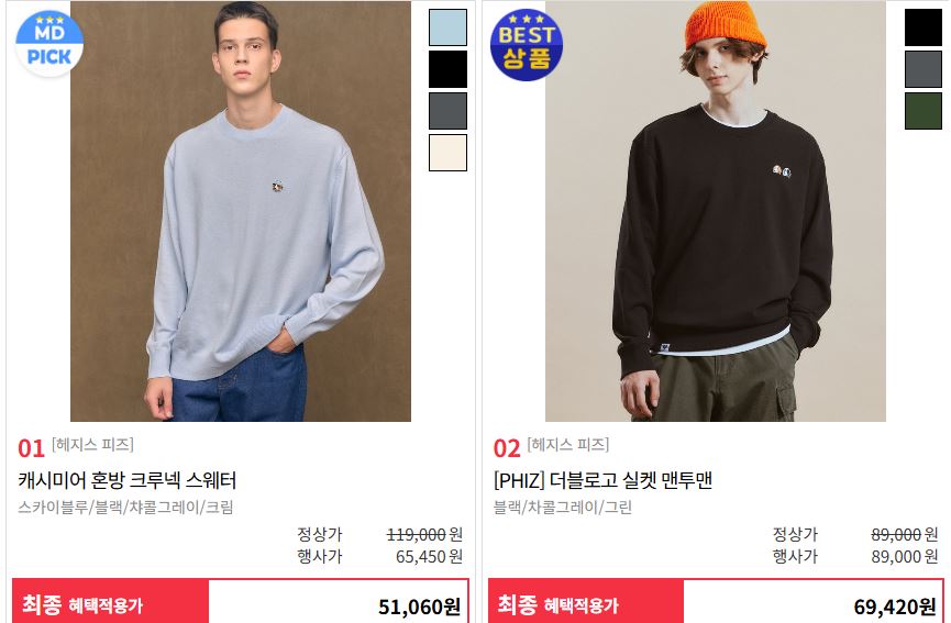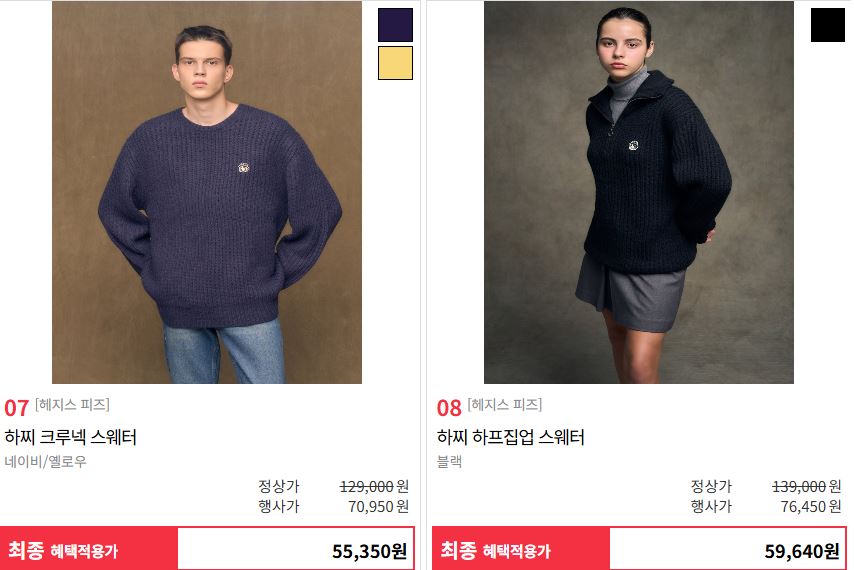 할인 품목 : 스웨터, 맨투맨 등